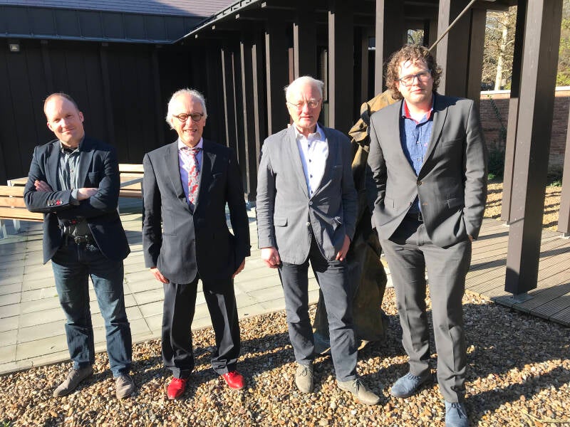 Fan lofts nei rjochts de hearen Janssen, Bremmer, Vries en Muntendam. Foto is nommen op 29 maart 2019 by de troch de FFYRUG organisearre dei oer de Takomst fan de frisistyk . De dei waard holden by de Fryske Akademy yn Ljouwert.